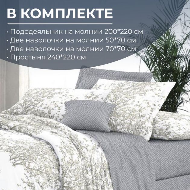 Комплектность: 1 пододеяльник, 1 простыня, 4 наволочки