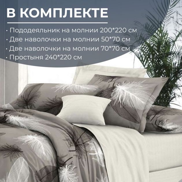 Комплектность: 1 пододеяльник, 1 простыня, 4 наволочки