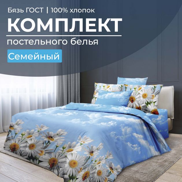 Комплект постельного белья Семейный, бязь ГОСТ (Воздушные ромашки )
