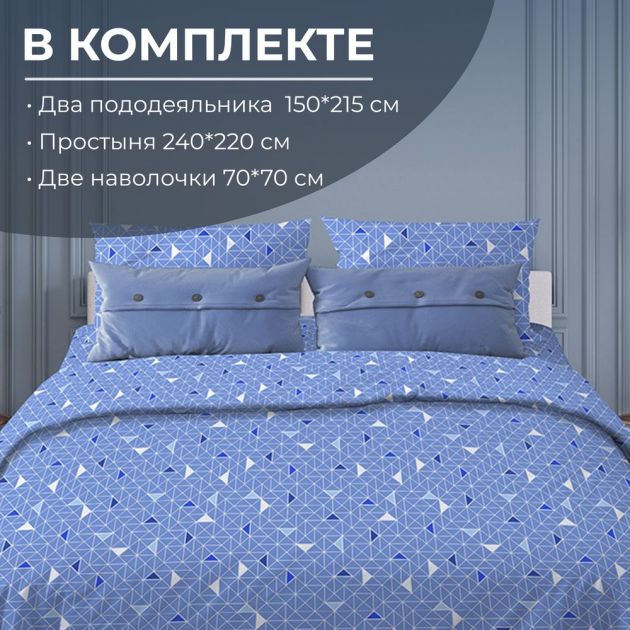 Комплект постельного белья Семейный, бязь "Комфорт" (Треугольники, светло-синий)