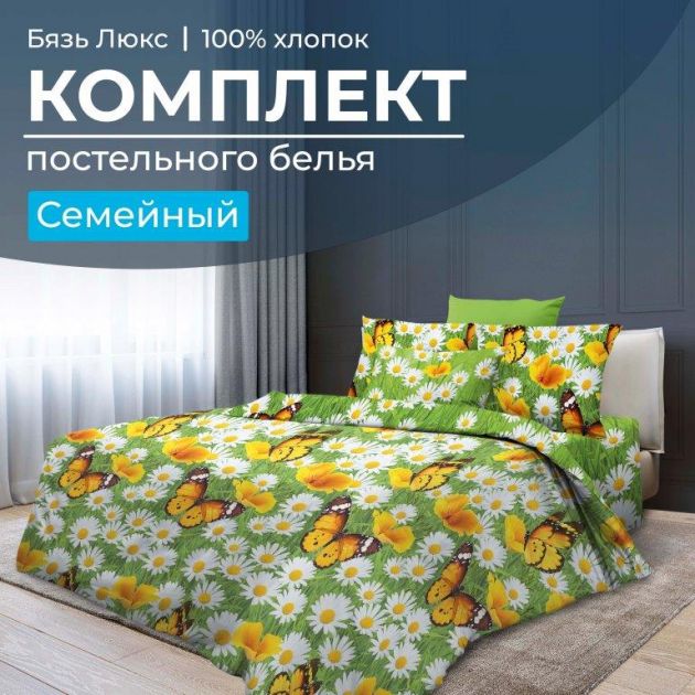 Комплект постельного белья Семейный, бязь "Люкс" (Ромашковая поляна)
