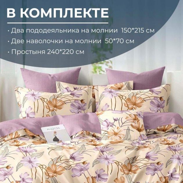 Комплектность: 2 пододеяльника, 1 простыня, 2 наволочки