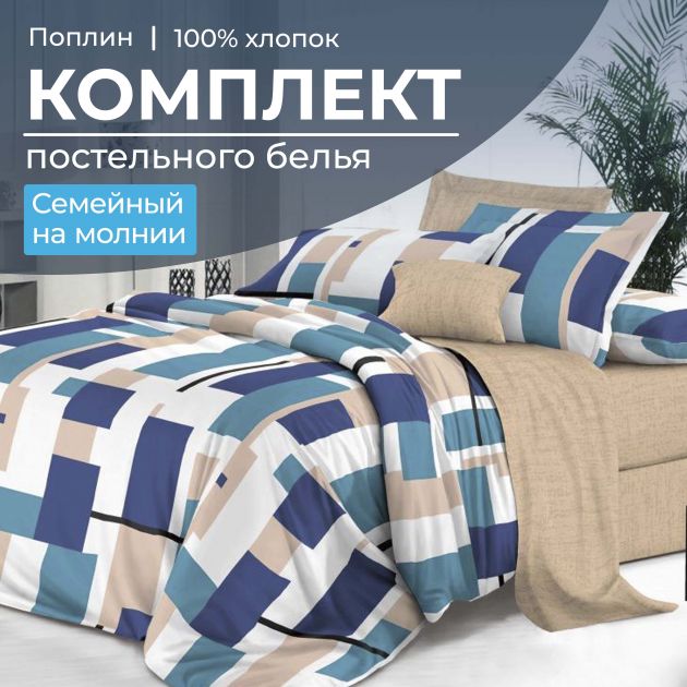 Комплект постельного белья Семейный, на молнии, поплин (Дженга)