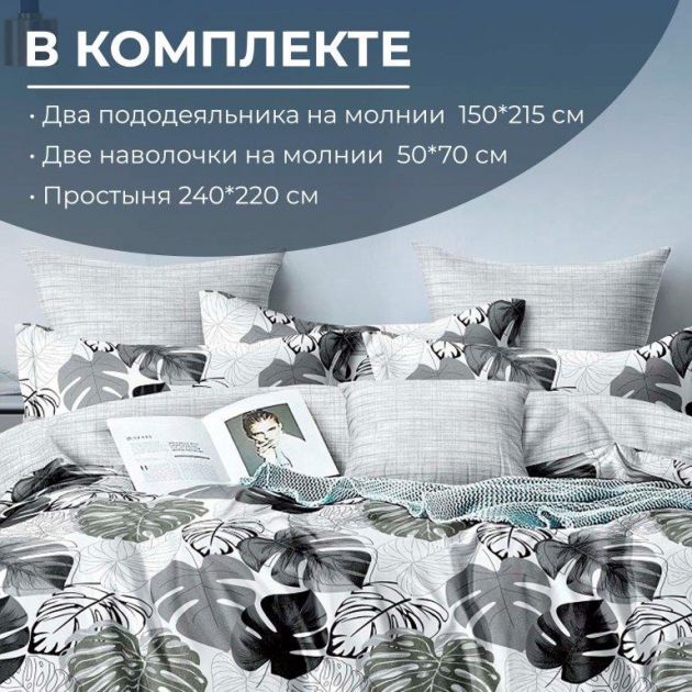 Комплектность: 2 пододеяльника, 1 простыня, 2 наволочки
