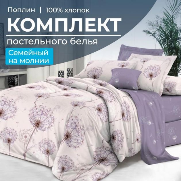 Комплект постельного белья Семейный, на молнии, поплин (Лю6ляна)