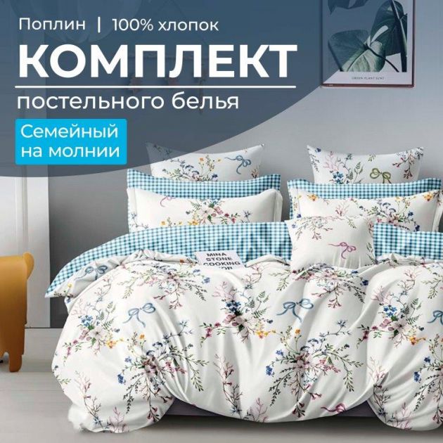 Комплект постельного белья Семейный, на молнии, поплин (Нежное утро)