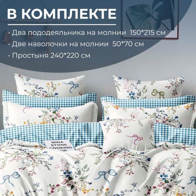 Комплектность: 2 пододеяльника, 1 простыня, 2 наволочки