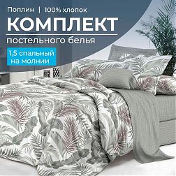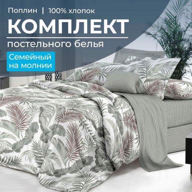 Комплект постельного белья Семейный, на молнии, поплин (Природный мотив)