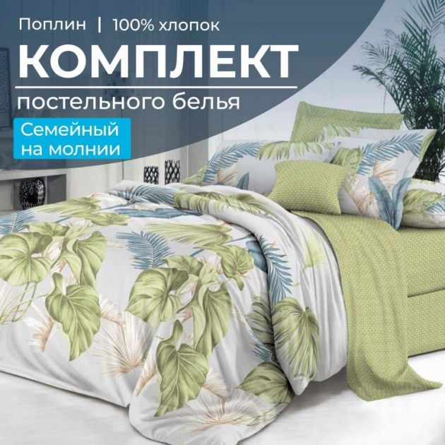 Комплект постельного белья Семейный, на молнии, поплин (Вайя)