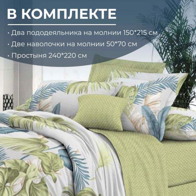 Комплектность: 2 пододеяльника, 1 простыня, 2 наволочки