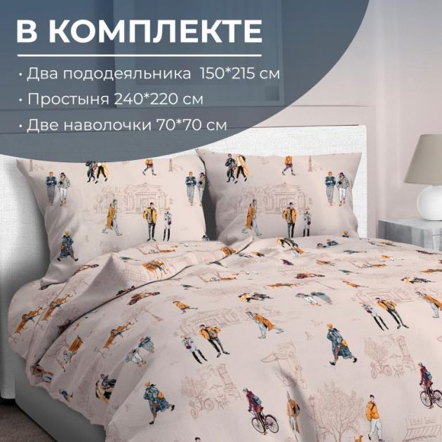 Комплект постельного белья из перкаля плотность ткани 110 г/м2 включает в себя: простынь размером 240 * 220 см, два пододеяльника размером 150 * 215 см (вход в пододеяльник выполнен в нижнем шве), наволочки размером 70x70 см две штуки (глубина клапана не менее 25 см). Перкаль - плотная, тонкая, гладкая и очень приятная по тактильным ощущениям ткань из 100% хлопка высокого качества, которая не требует особого ухода, стирается при температуре 40°С, не растягивается и прекрасно держит форму, хорошо впитывает влагу, пропускает воздух и не липнет к телу. Рисунки на такой ткани получаются ярким и четким. Сон на таком постельном белье будет сладким, а отдых - комфортным! Наши изделия произведены в Ивановской области, имеют сертификацию качества "ГОСТ 31307-2005", а также зарегистрированы в государственной системе маркировки "Честный знак". Размерность комплекта