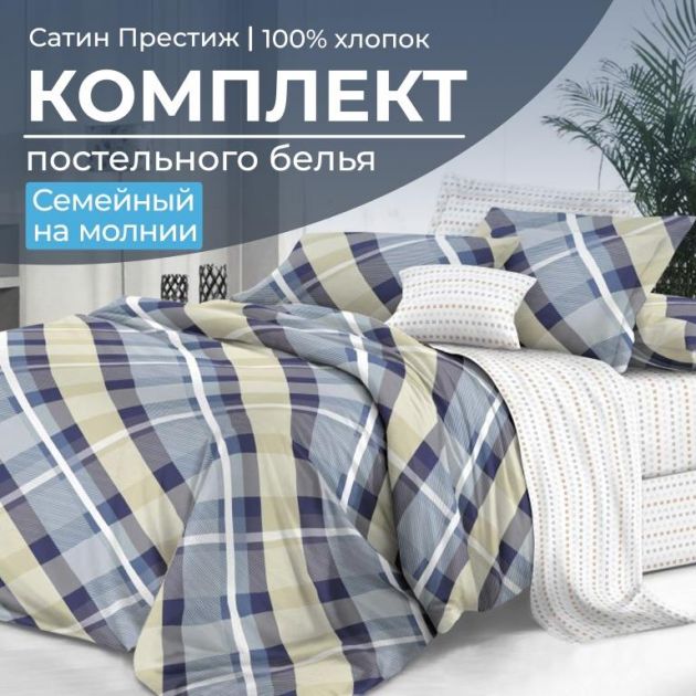 Семейное постельное белье из сатина «Престиж» плотностью ткани 115 г/м2 - идеальное решение для создания уюта и комфортного сна. В комплекте: 2 пододеяльника 150 * 215 см, оснащенных удобной потайной застежкой на молнии, простыня 240 * 220 см, наволочки 70 * 70 см на молнии - 2 штуки, 50 * 70 см на молнии - 2 шт. Постельное белье из сатина «Престиж» нежное, мягкое, похожее на шёлк, но при этом прочное, износостойкое, выдерживает многочисленные стирки, не теряя исходного цвета. Семейный комплект постельного белья из сатина «Престиж» с роскошным дизайном и великолепным качеством ткани и пошива прослужит долго и будет радовать Вас и ваших близких. Размерность комплекта
