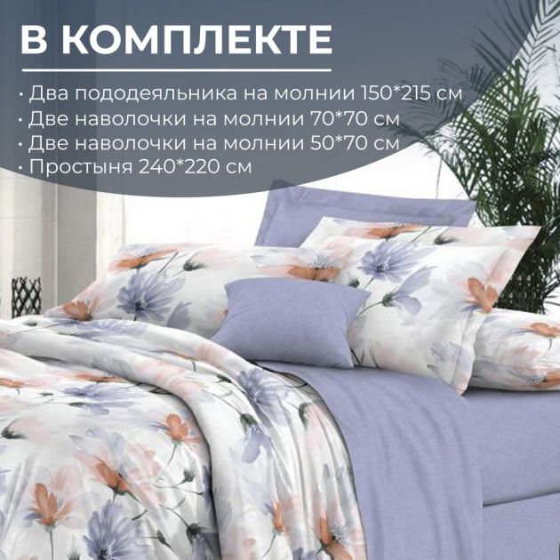 Комплектность: 2 пододеяльника, 1 простыня, 4 наволочки
