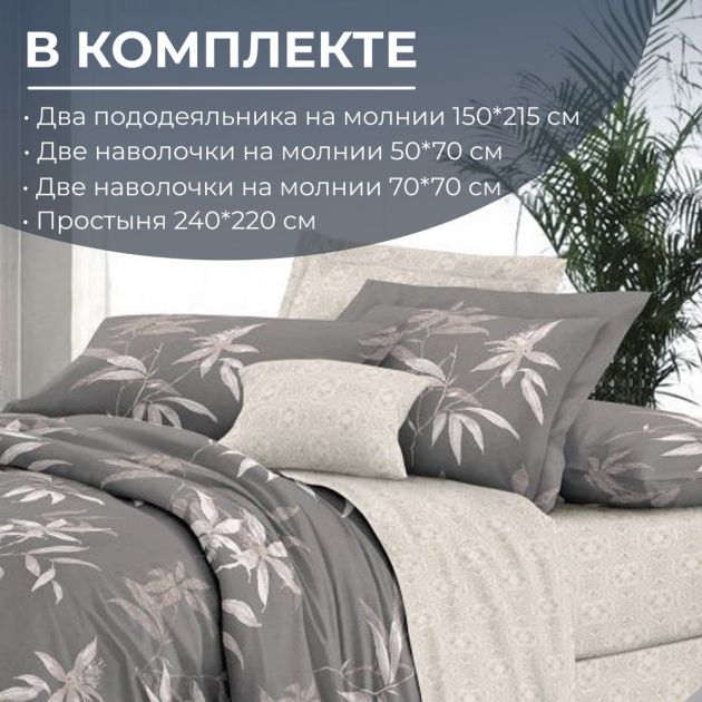 Комплектность: пододеяльник 2 шт., простыня 1 шт., наволочка 4 шт.