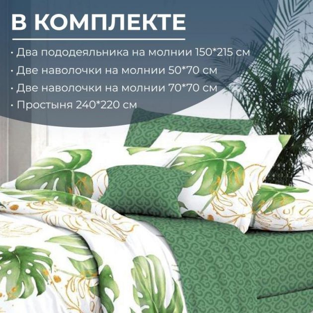 Комплектность: 2 пододеяльника, 1 простыня, 4 наволочки