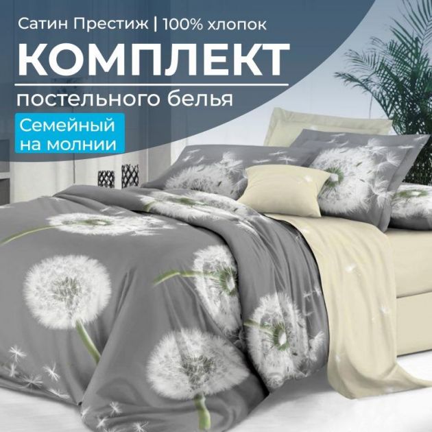 Роскошные дизайны и великолепное качество ткани! Купив семейное постельное белье из сатина "Престиж" с двумя пододеяльниками, Вы сделаете королевский выбор!