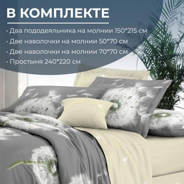 Комплектность: пододеяльник 2 шт., простыня 1 шт., наволочка 4 шт.