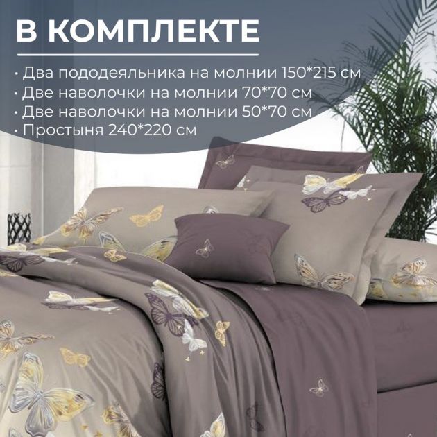 Комплектность: 2 пододеяльника, 1 простыня, 4 наволочки