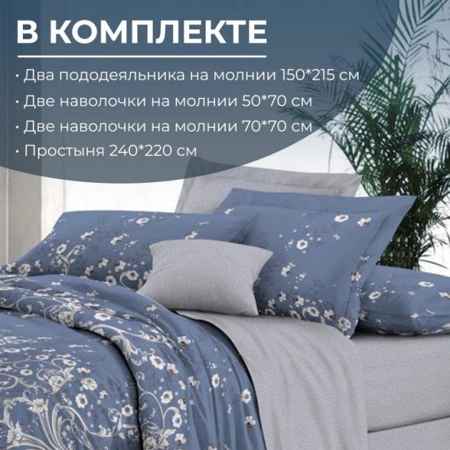 Комплектность: пододеяльник 2 шт., простыня 1 шт., наволочка 4 шт.