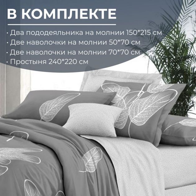 Комплектность: 2 пододеяльника, 1 простыня, 4 наволочки