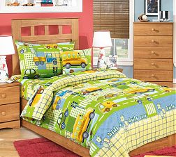 Комплект постельного белья в детскую кроватку, бязь "Люкс" (Машинки, зеленый)