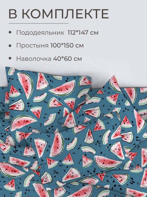 Комплект постельного белья в детскую кроватку, перкаль (Арбузики, бирюзовый)