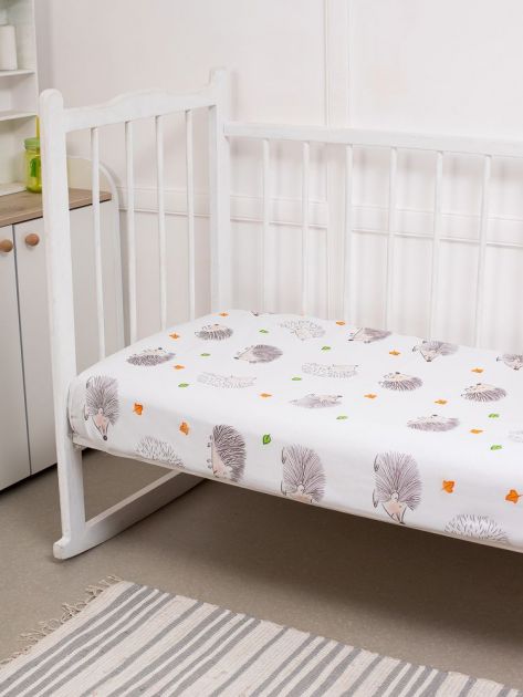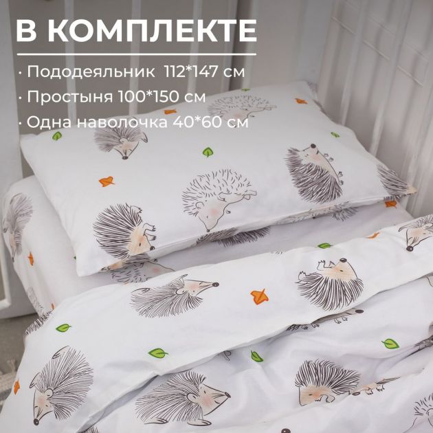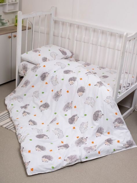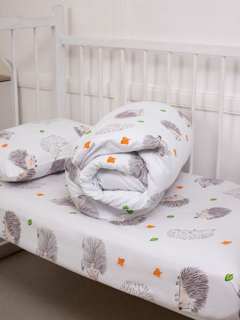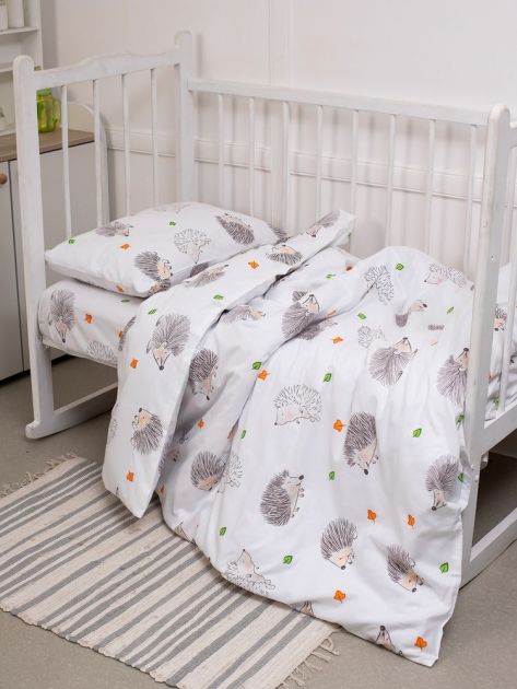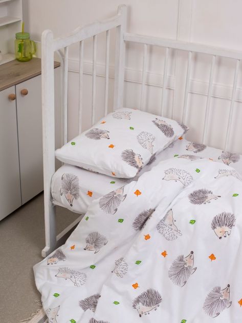 Комплект постельного белья в детскую кроватку, перкаль, детская расцветка (Ёжики)