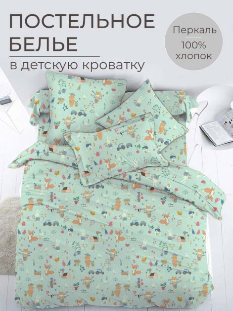 Комплект постельного белья в детскую кроватку, перкаль (Ферма)
