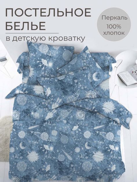 Комплект постельного белья в детскую кроватку, перкаль (Космос)
