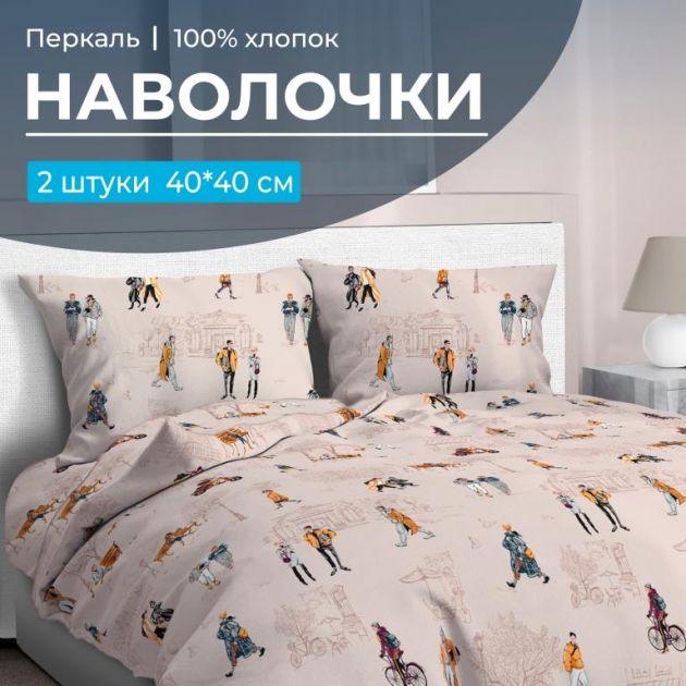 Комплект наволочек 40*40 см (2 шт.), перкаль (Осенний город)