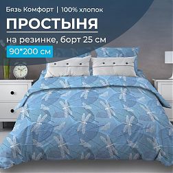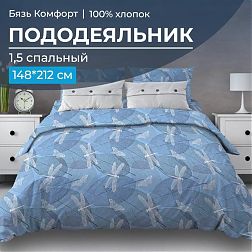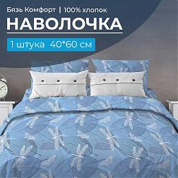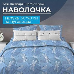 Комплект наволочек 50*70 см (2 шт.), бязь "Комфорт", на пуговицах (Стрекозы, голубой)