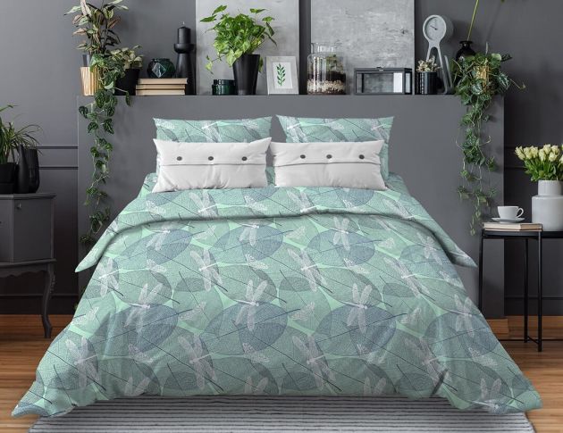 Комплект наволочек 50*70 см (2 шт.), бязь "Комфорт", на пуговицах (Стрекозы, мятный)