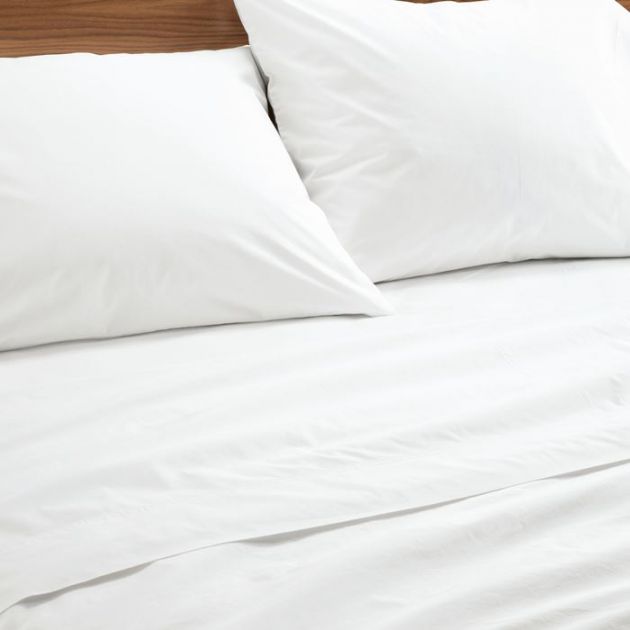 Комплект из двух льняных белых наволочек 50*70 м на клапане глубиной не менее 25 см. Плотность ткани 155 г/м2.