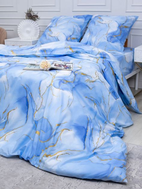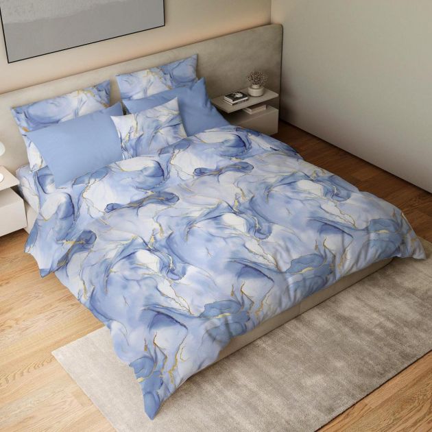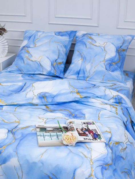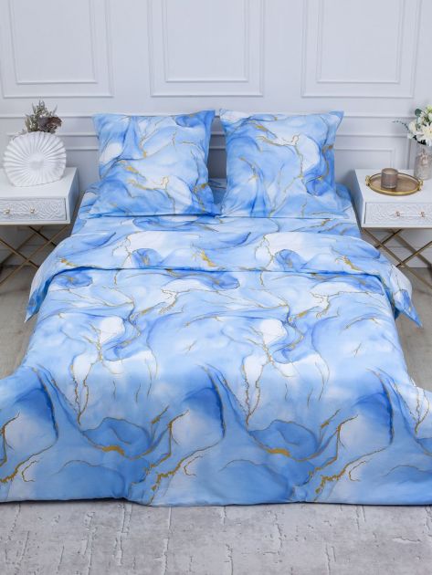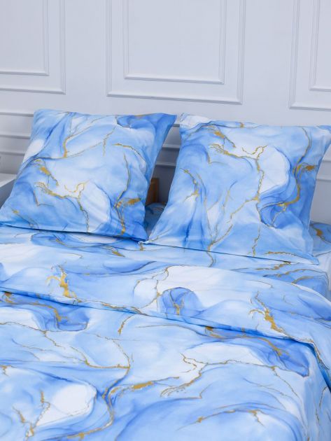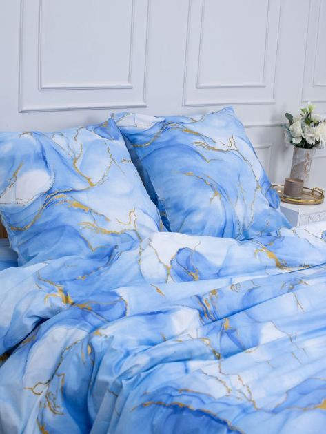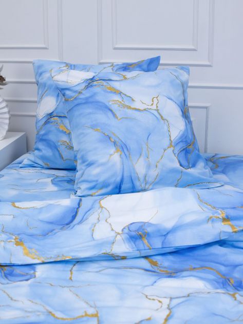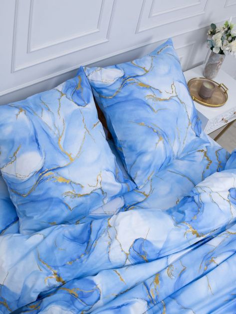 Наволочка 40*40 см, перкаль (Мраморный узор, синий)