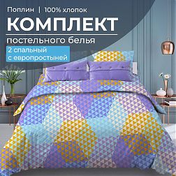 Наволочка 40*40 см, поплин (Гексагон, голубой)