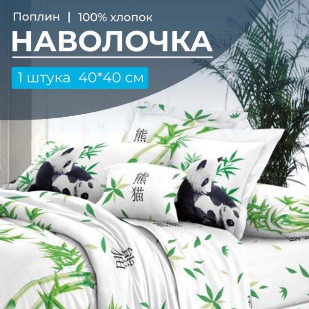 Наволочка 40*40 см, поплин (Панды (основа))