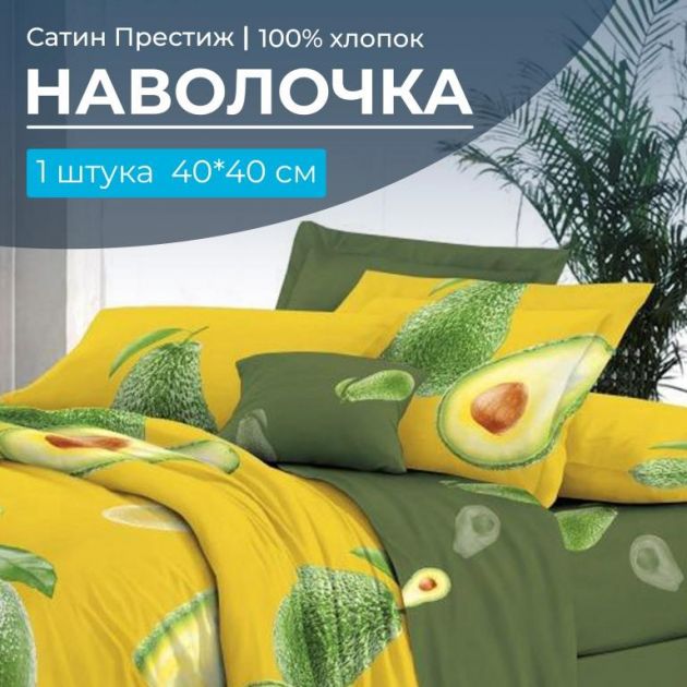 Наволочка 40*40 см, сатин "Престиж", на клапане (Авокадо (компаньон))