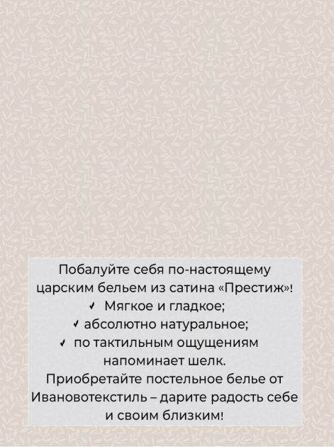 Наволочка (1 штука) из сатина "Престиж" размером 40x40 см на клапане, плотностью ткани 115 г/м2. Сатин "Престиж" - это ткань из 100% хлопка, с благородным блеском, который придает изделиям определенный шик, а нежная и гладкая поверхность не оставит никого равнодушным. Постельное белье из сатина служит долго, так как ткань почти не изнашивается (не вытягивается, не деформируется), оно гипоаллергенное, мало сминаемое, обеспечивает прекрасную регулировку теплового обмена, потому отдыхать под бельем из сатина весьма приятно. Не упустите возможность приобрести наш комплект наволочек из сатина "Престиж" и погрузиться в мир здорового и комфортного сна каждую ночь! Размер наволочки