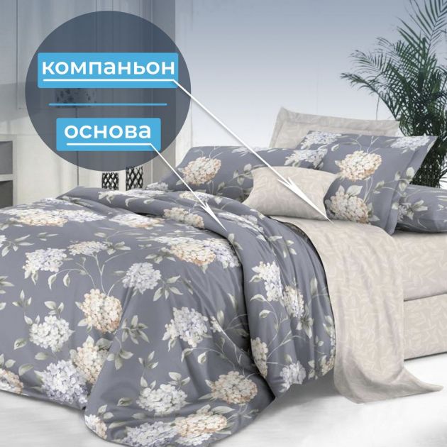 Наволочка 40*40 см, сатин "Престиж", на клапане (Гортензии (компаньон))