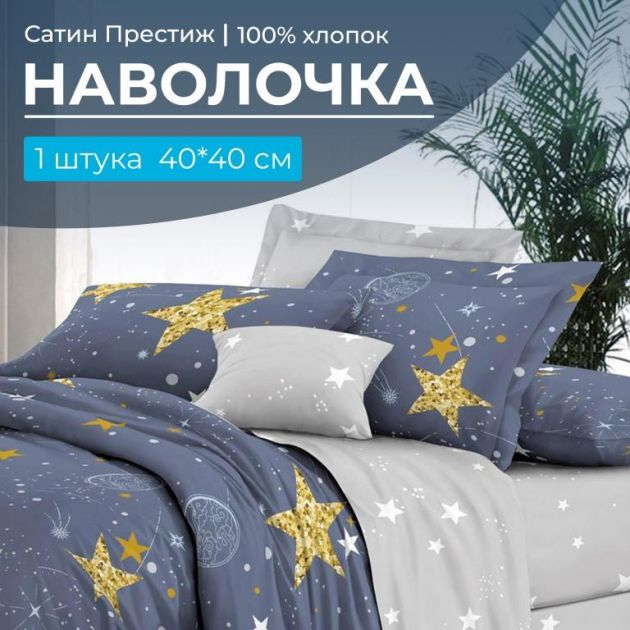 Наволочка 40*40 см, сатин "Престиж", на клапане (Космос основа)