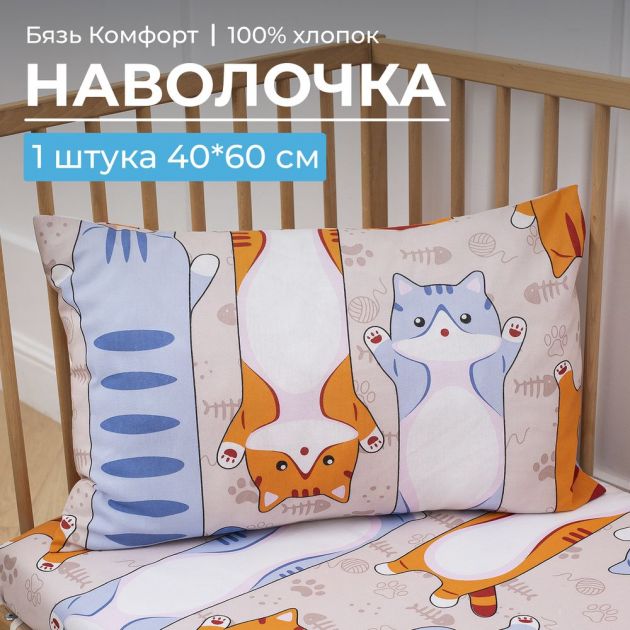 Наволочка 40*60 см, бязь "Комфорт", детская расцветка (Кот батон)