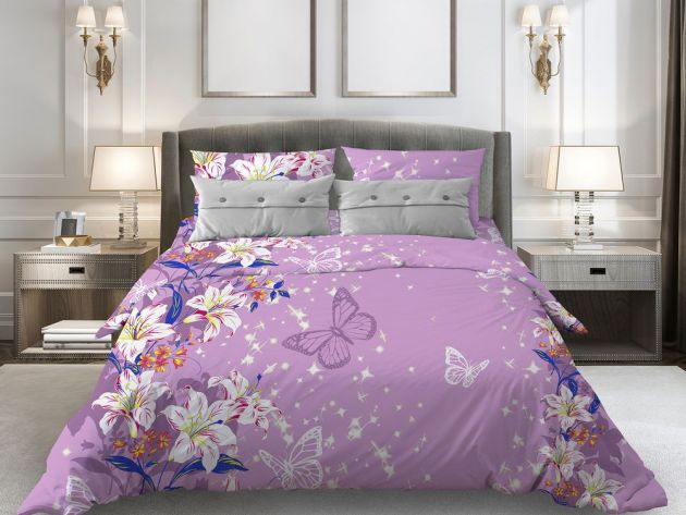 Наволочка 40*60 см, бязь "Комфорт" (Лилии, сиреневый)