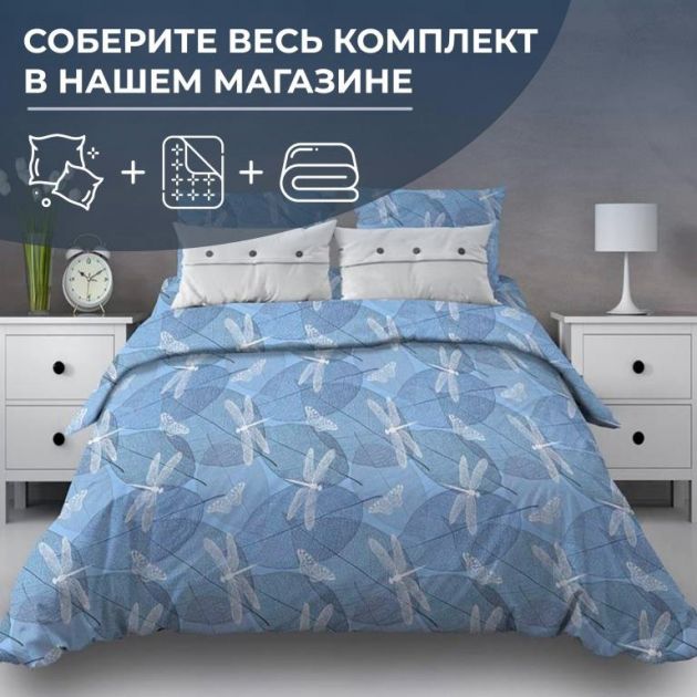 Наволочка 40*60 см, бязь "Комфорт" (Стрекозы, голубой)
