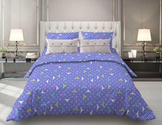 Наволочка 40*60 см, бязь "Комфорт" (Треугольники, синий)