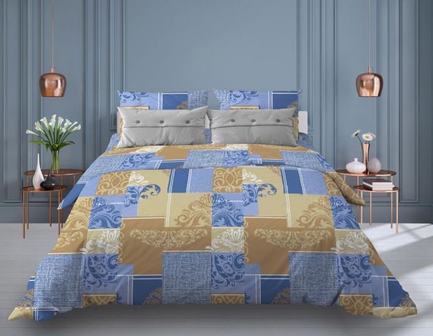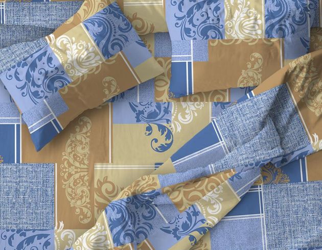 Наволочка 40*60 см, бязь "Комфорт" (Вензель, бежевый с синим)