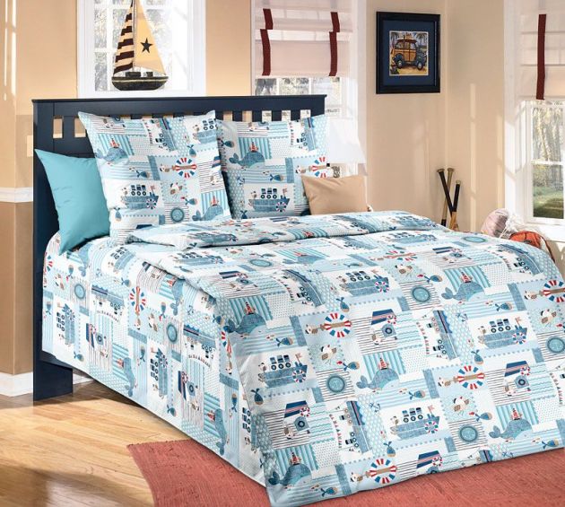 Наволочка 40*60 см, бязь "Люкс", детская расцветка (Кораблик)