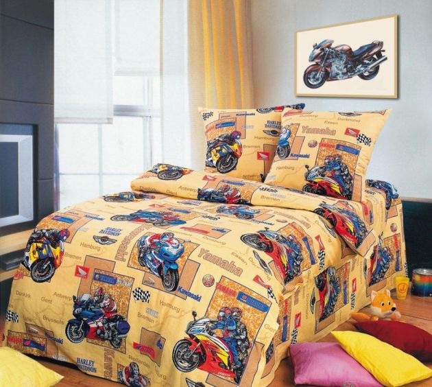 Наволочка 40*60 см, бязь "Люкс", детская расцветка (Мотоспорт)