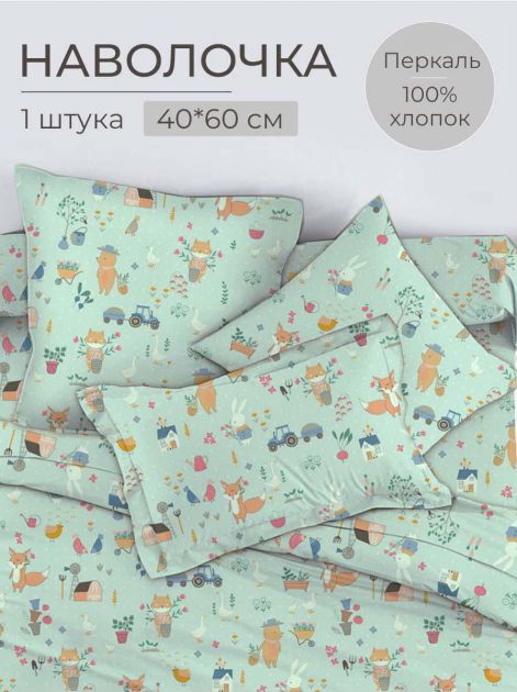 Наволочка 40*60 см, перкаль, детская расцветка (Ферма)