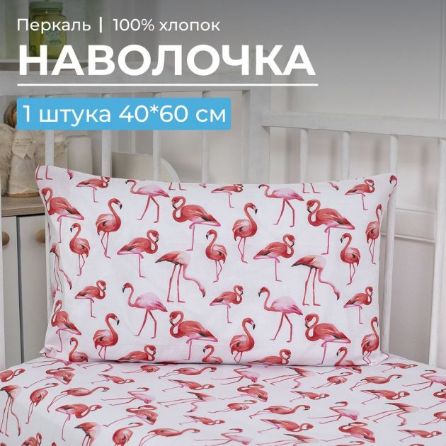 Наволочка 40*60 см, перкаль, детская расцветка (Фламинго)