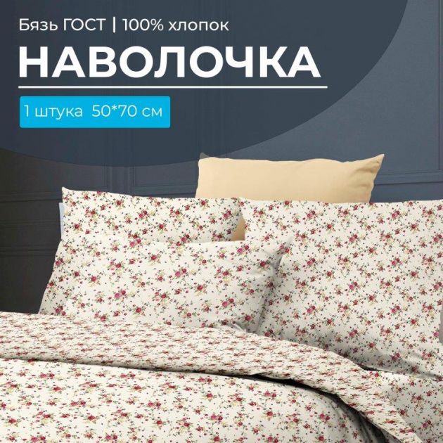 Наволочка 50*70 см, бязь ГОСТ, на клапане глубиной не менее 25 см Размер наволочки